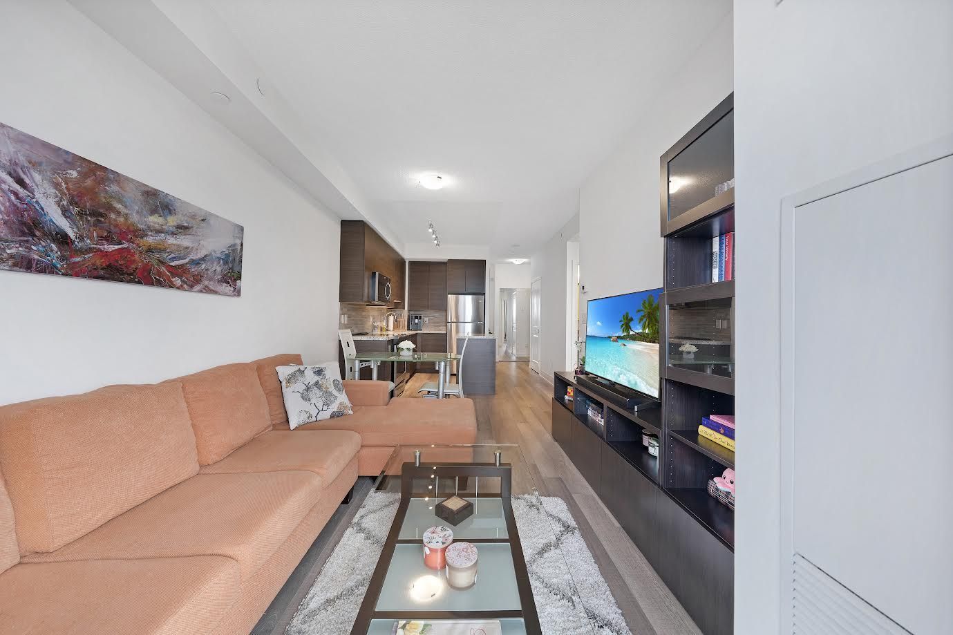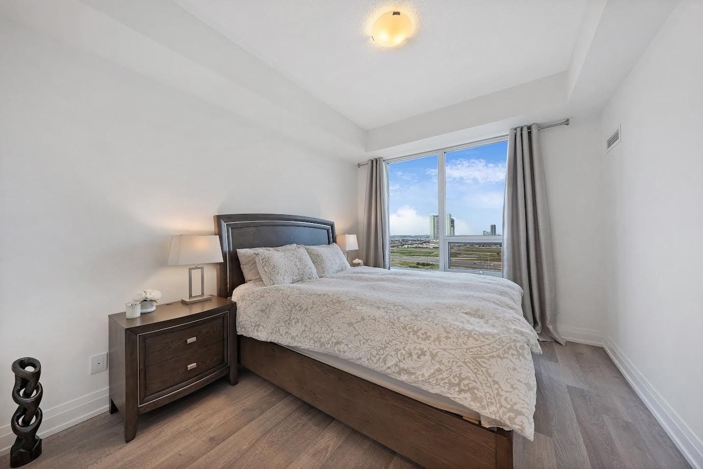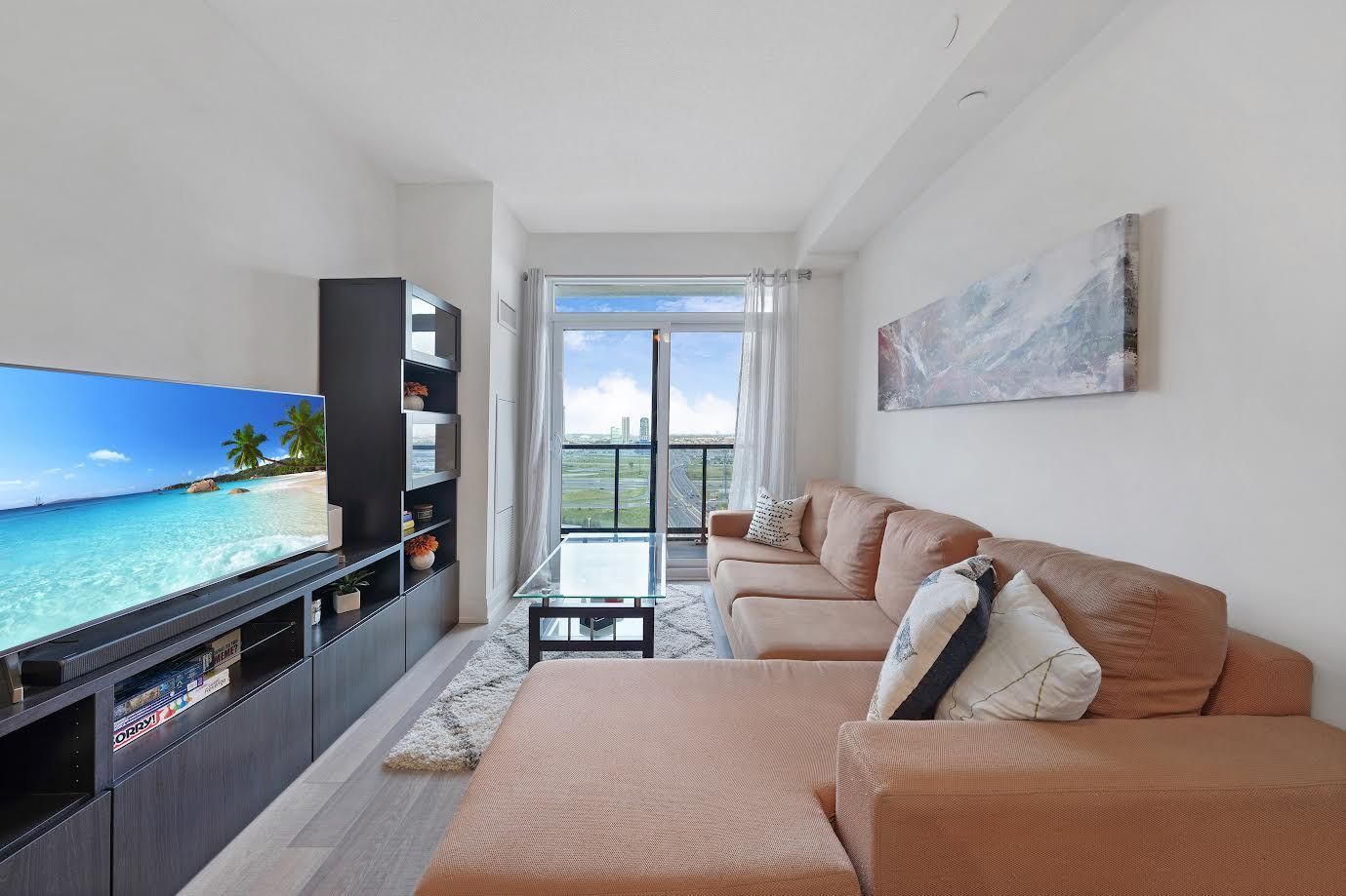 This Fully Upgraded, Modern & Bright 1 Bedroom + Den 650 Sq Ft + 40 Sq Ft Balcony W/ Unobstructed East Side Views Condo Features 9 Ft Ceilings, Open Concept Layout And High-End Finishes. Upgraded Entry W/Frameless Double Door Mirrored Closet, Upgraded Kitchen Cabinets Equipped With Stainless Steel Appliances, Granite Countertops, A Custom Backsplash And A Central Island. Wake Up With The Warm Morning Sunrise That Enters The Living Room & The Spacious Bedroom W/Walk In Closet Offering Ample Storage Space. Upgraded Bathroom Finishing's W/Rain Shower, Quartz Countertop W/Undermount Sink And Extended Cabinets For Extra Space. Upgraded Cobblestone Oak Lexington Laminate Through Out. The State Of The Art Recreation Facility Includes: 24Hr Concierge, Golf Simulator, Indoor Swimming Pool, Sauna And Hot Tub, Yoga Studio, Billiards Room, Gym, Meeting Room, Media Room, Bike Lockers, Ample Visitor Parking, Third Floor Terrace W/ BBQs. Steps From Shops, Cinemas, Restaurants, Vaughan Mills Mall, Wonderland, TTC Subway & Highways 400/407/7. One Locker & One Parking Spot Conveniently Located Near Elevators.
