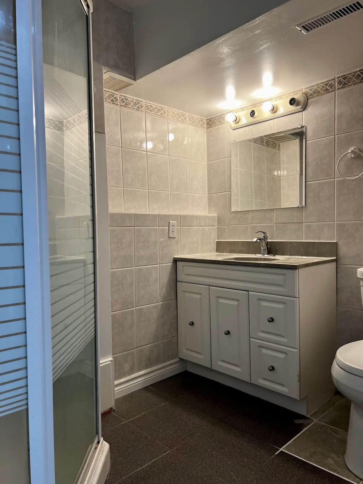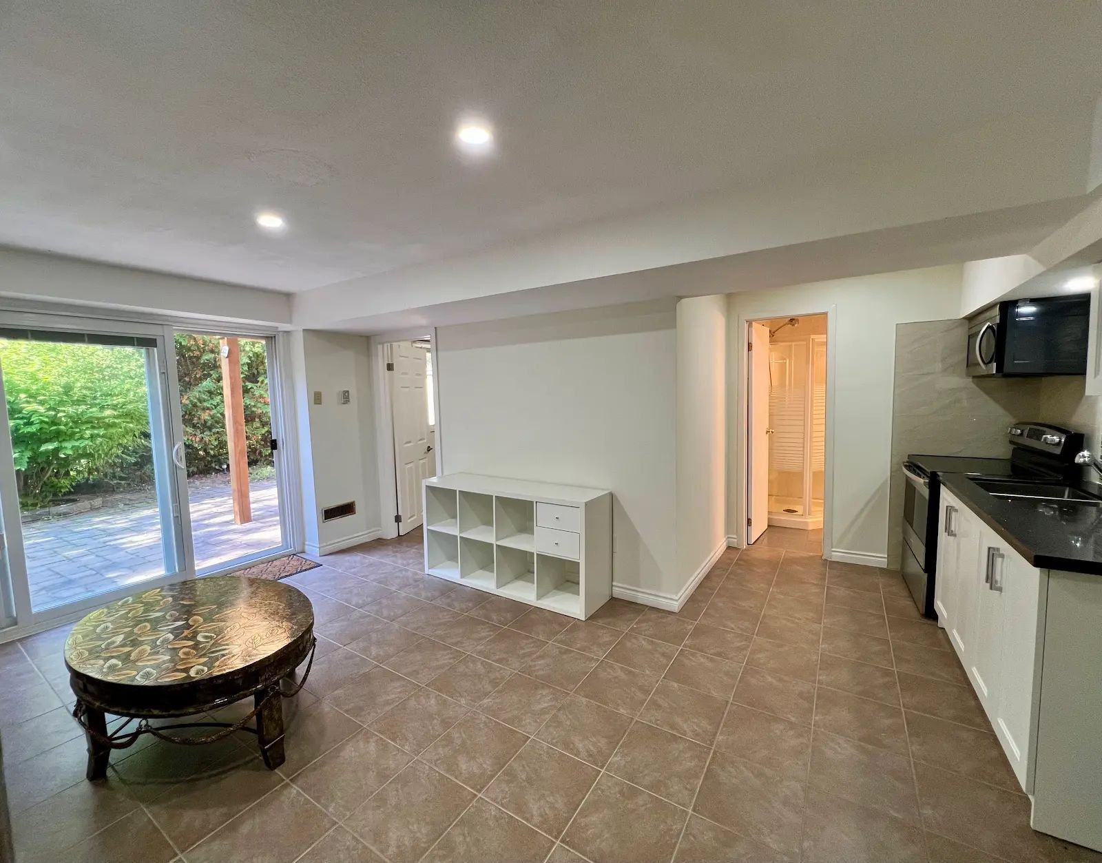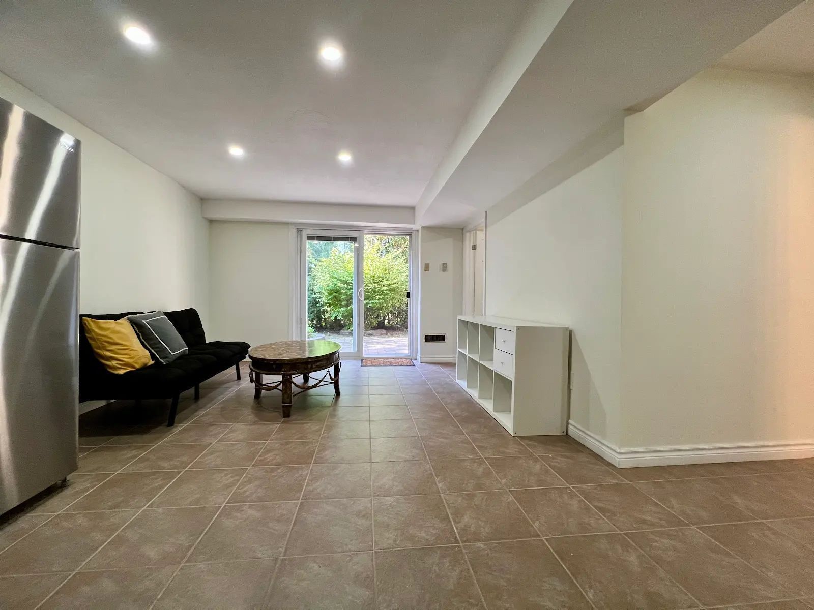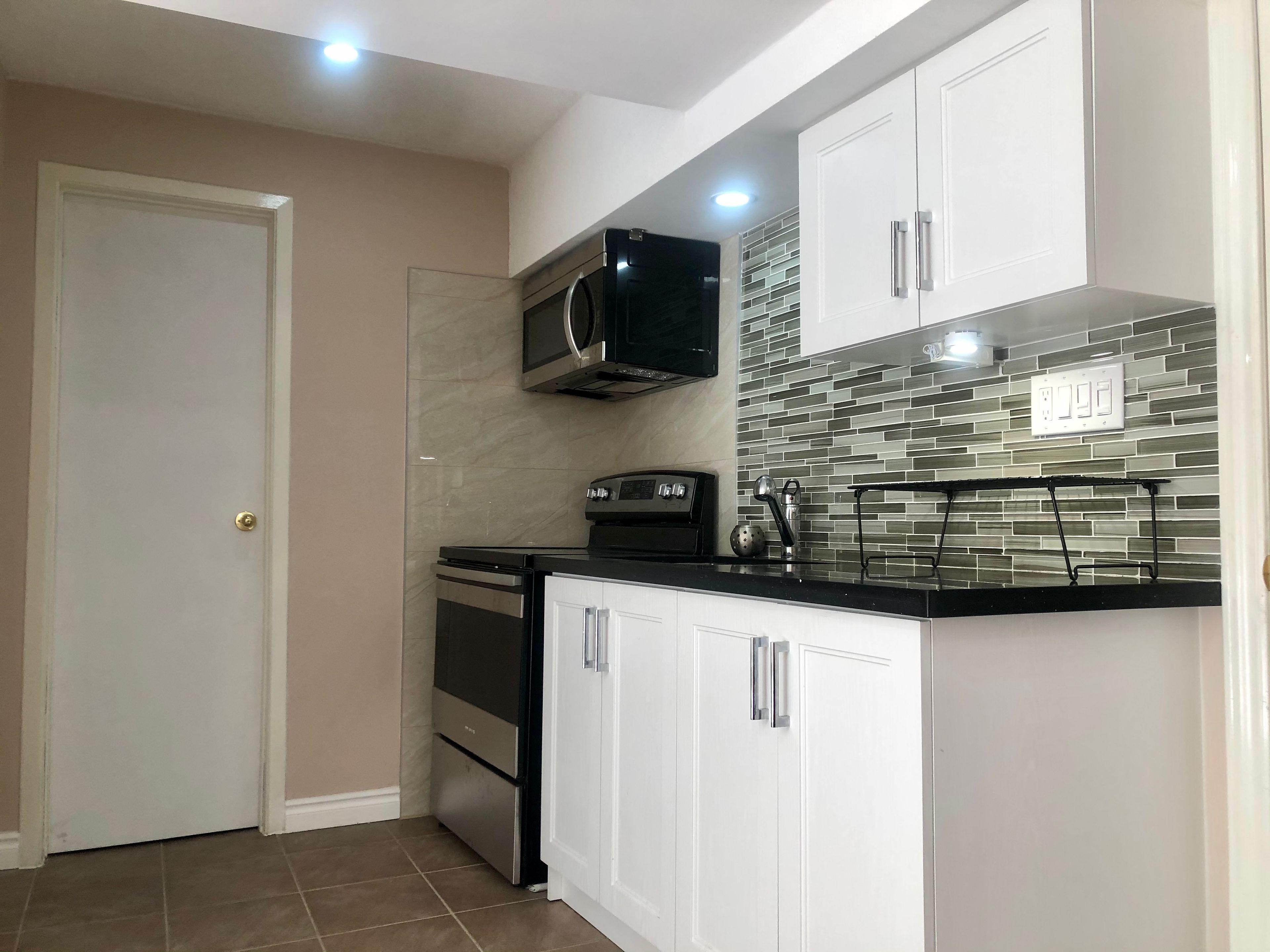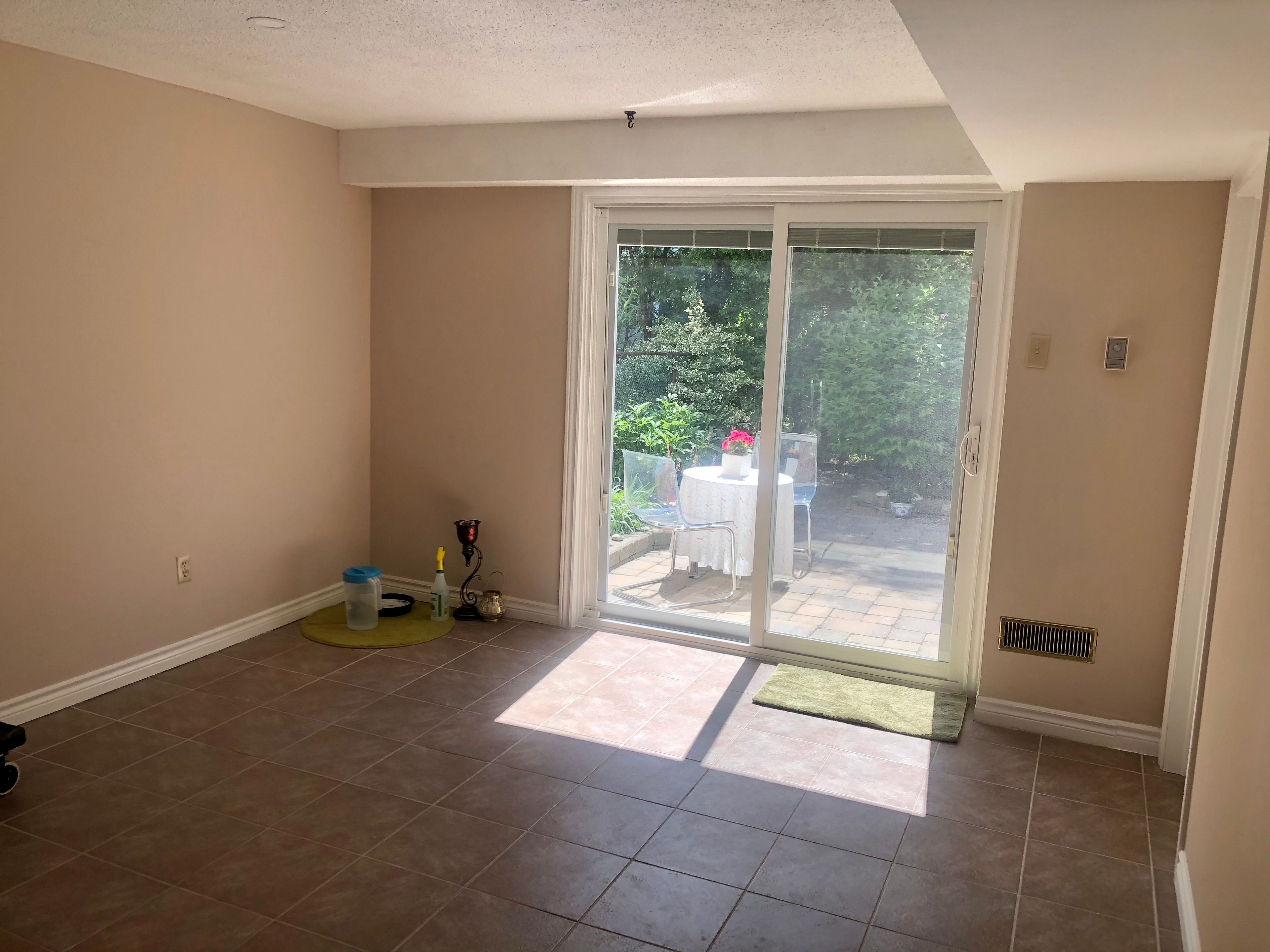Bright floor to ceiling window, Walk out to exclusively used backyard, Newly painted Spacious 1B+D Bsmt Apt. Tucked away in a peaceful, family-friendly neighborhood. Steps to Bus, Go station and Centennial Park. Minutes to 401/427 and Airport! All newer appliances fridge, stove, microwave. Separate Entrance, Tenant pay 1/3 Utilities, Shared laundry, 1 Parking. Looking for quiet and clean professional, prefer single occupancy. No smoking, No pets.